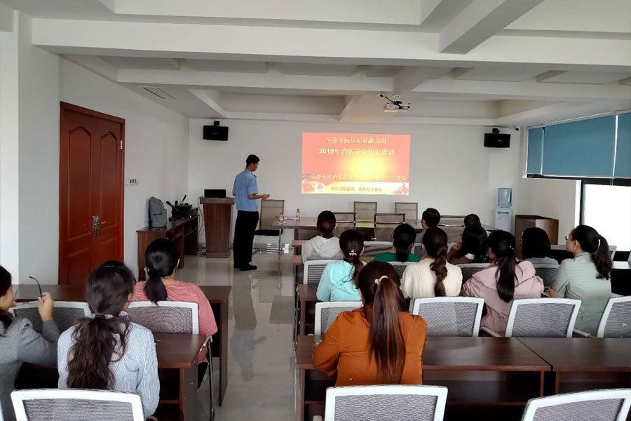 华鉴国际认证有限公司公司于2019年9月18日组织员工参加消防安全知识讲座,由成都市政消消防宣传中心宣讲教官王泽昊主讲。王教官细心讲解了消防法,四个能力建设,如何扑灭初期火灾,如何逃生自救,出行安全,消防器材的正确使用方法等消防安全知识,提高了单位员工的消防意识,增强了单位员工逃生自救的能力,进一步让我公司认识到消防安全工作的重要性。